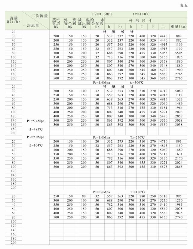 出口蒸汽壓力P2、溫度t2按用戶要求值,其調節精度不低于2.5級。