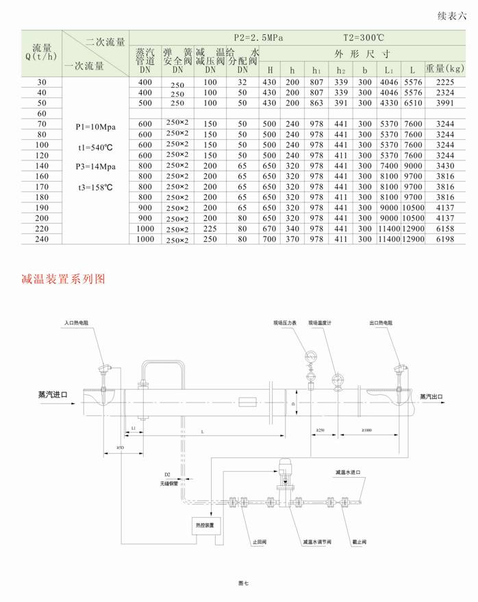 產品名稱、蒸汽流量(進口或出口流量)、進口蒸氣壓力(P1)、溫度(t1)、出口蒸汽壓力(P2)、溫度(t2)、減溫水壓力(P3)、溫度(t3)(減溫水壓力應高于出口蒸汽壓力1MPa)。